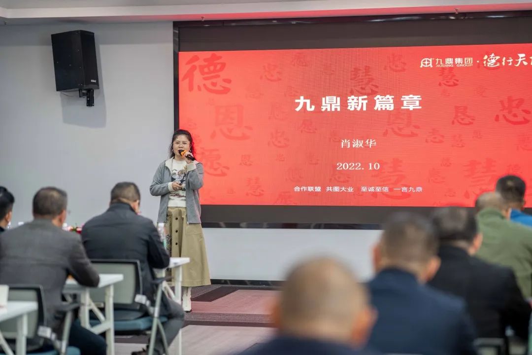 集團(tuán)副總裁肖淑華圍繞“九鼎新篇章、九鼎飼料價值服務(wù)體系、九鼎飼料不一樣”三大主題作工作指導(dǎo)