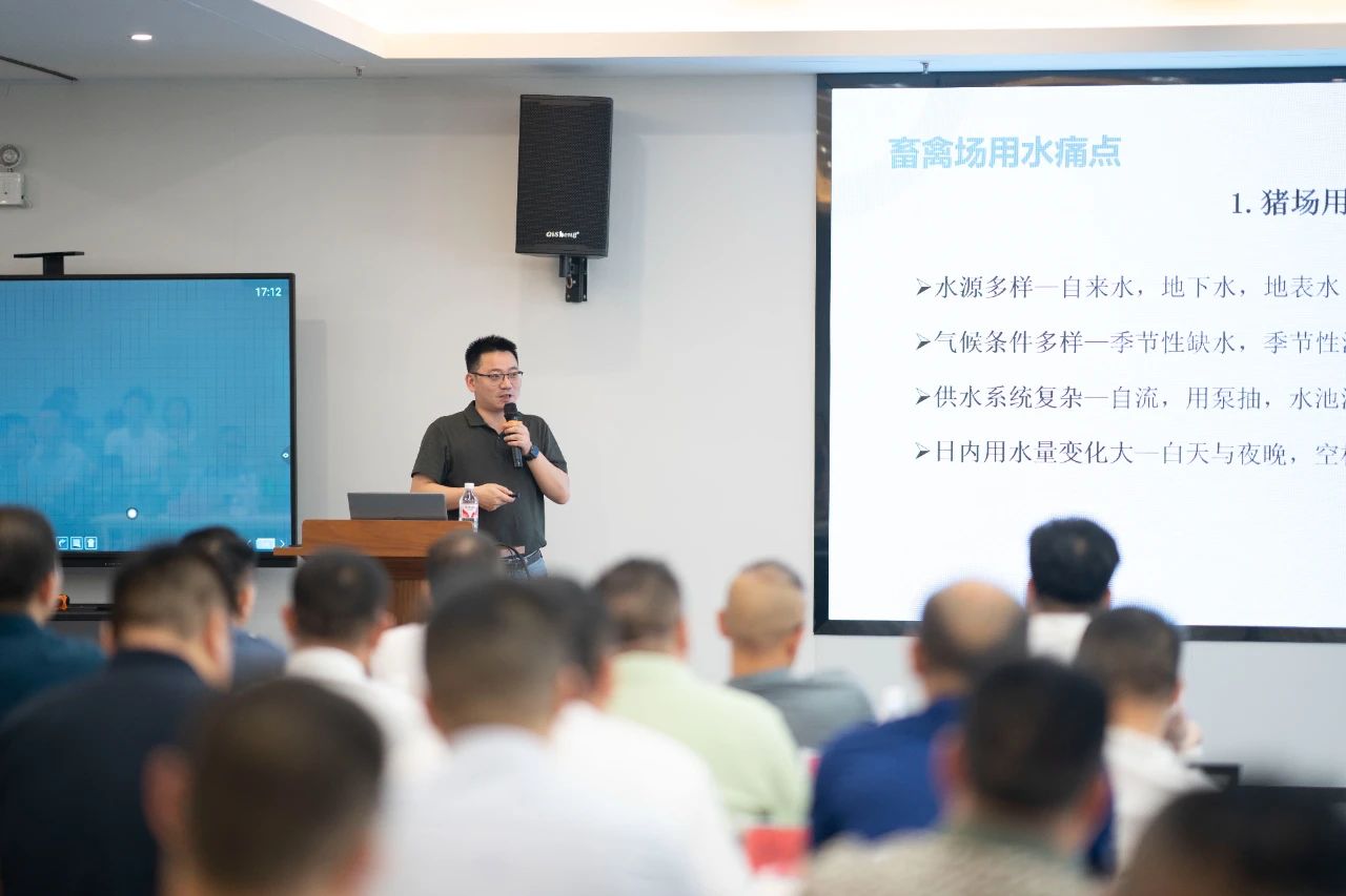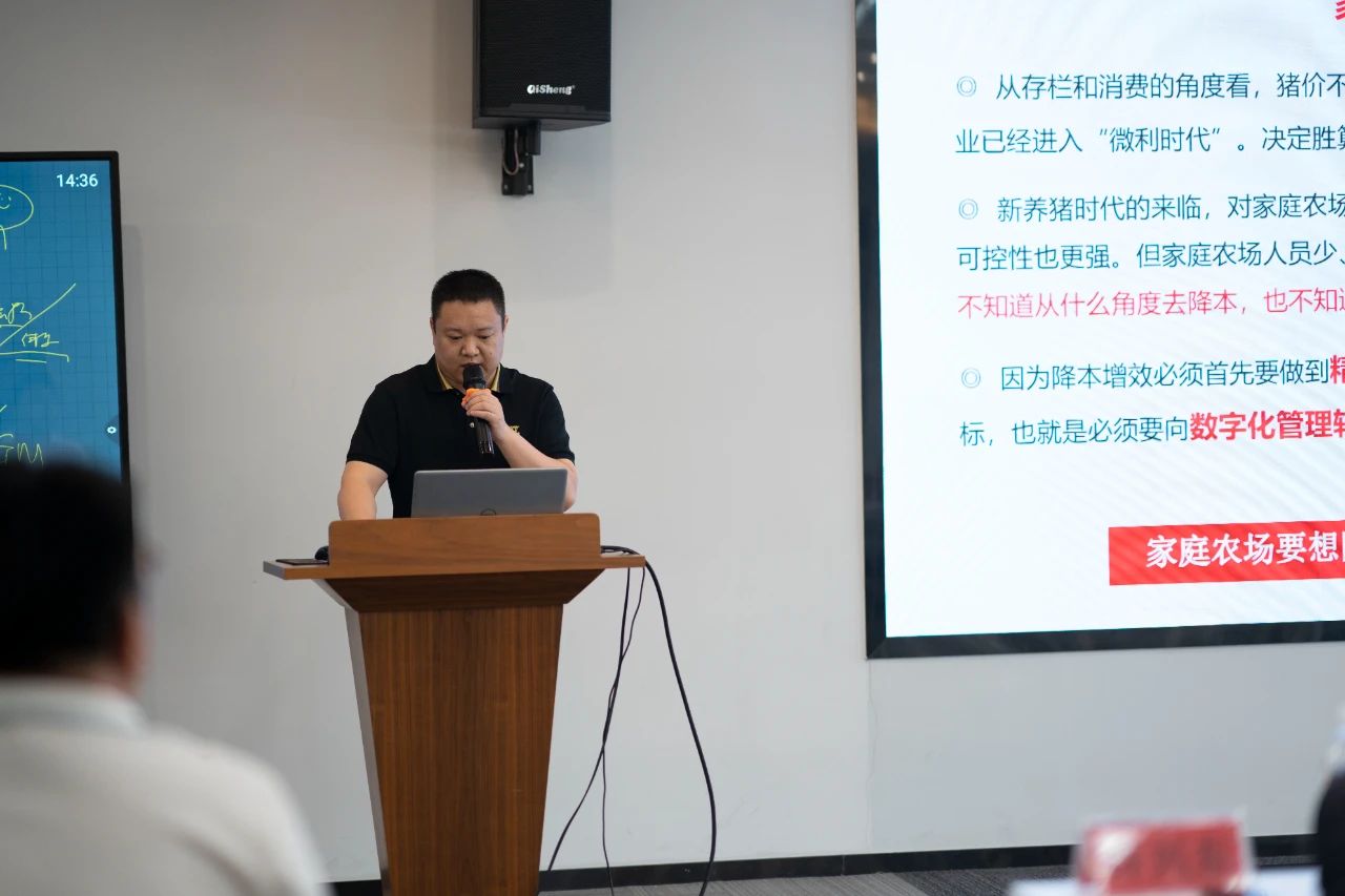 ▲潤農(nóng)科技總經(jīng)理劉南林分享了數(shù)字化服務(wù)促進養(yǎng)殖精益管理案例