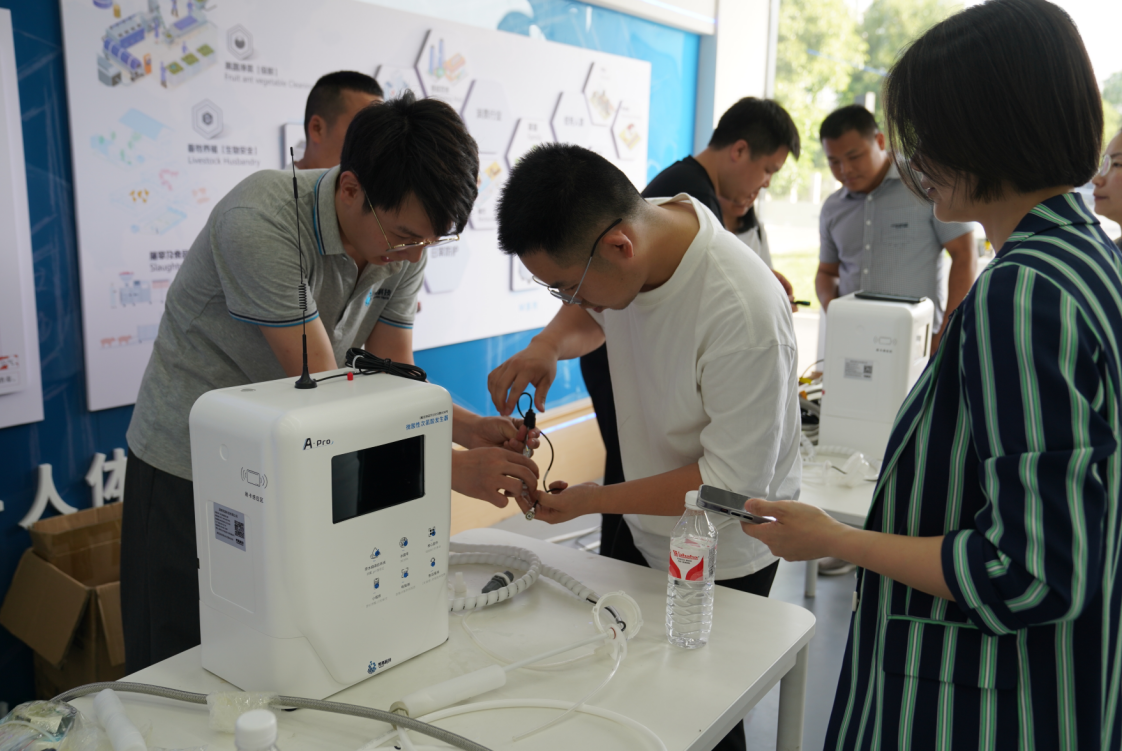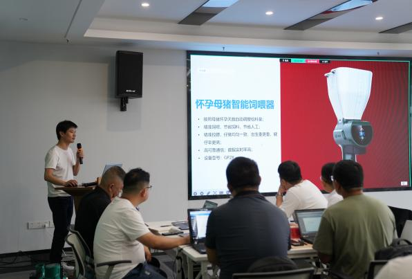 隨后潤(rùn)農(nóng)羅清經(jīng)理介紹母豬飼喂器、懷孕飼喂器和粥料器等智能飼喂設(shè)備的應(yīng)用場(chǎng)景及價(jià)值點(diǎn),展示飼喂器實(shí)物和講解安裝操作方法。接著至潤(rùn)農(nóng)展廳進(jìn)行參觀,現(xiàn)場(chǎng)進(jìn)行設(shè)備安裝調(diào)控操作和控制平臺(tái)操作的培訓(xùn),確保每個(gè)服務(wù)老師能講、能裝、能調(diào)試、能維護(hù),為客戶實(shí)現(xiàn)膘體管控+潤(rùn)農(nóng)飼喂器的“一條龍”服務(wù)。