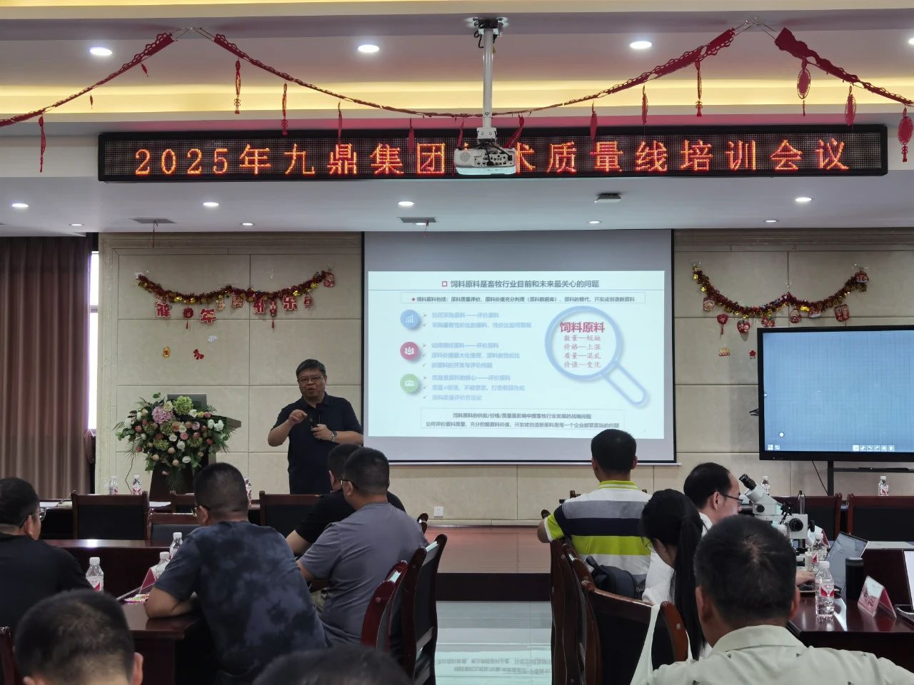 2025年7月22日至23日,九鼎集團在岳陽基地湖南農(nóng)牧成功組織召開技術質(zhì)量線專題培訓會議。本次會議特邀飼料行業(yè)資深專家、青島蔚藍生物股份有限公司動物營養(yǎng)首席科學家郭吉原老師及其團隊現(xiàn)場授課指導,集團技術、質(zhì)量、采購三線近 80 名骨干人員齊聚一堂,共同參與這場聚焦質(zhì)量管理升級的專業(yè)培訓。